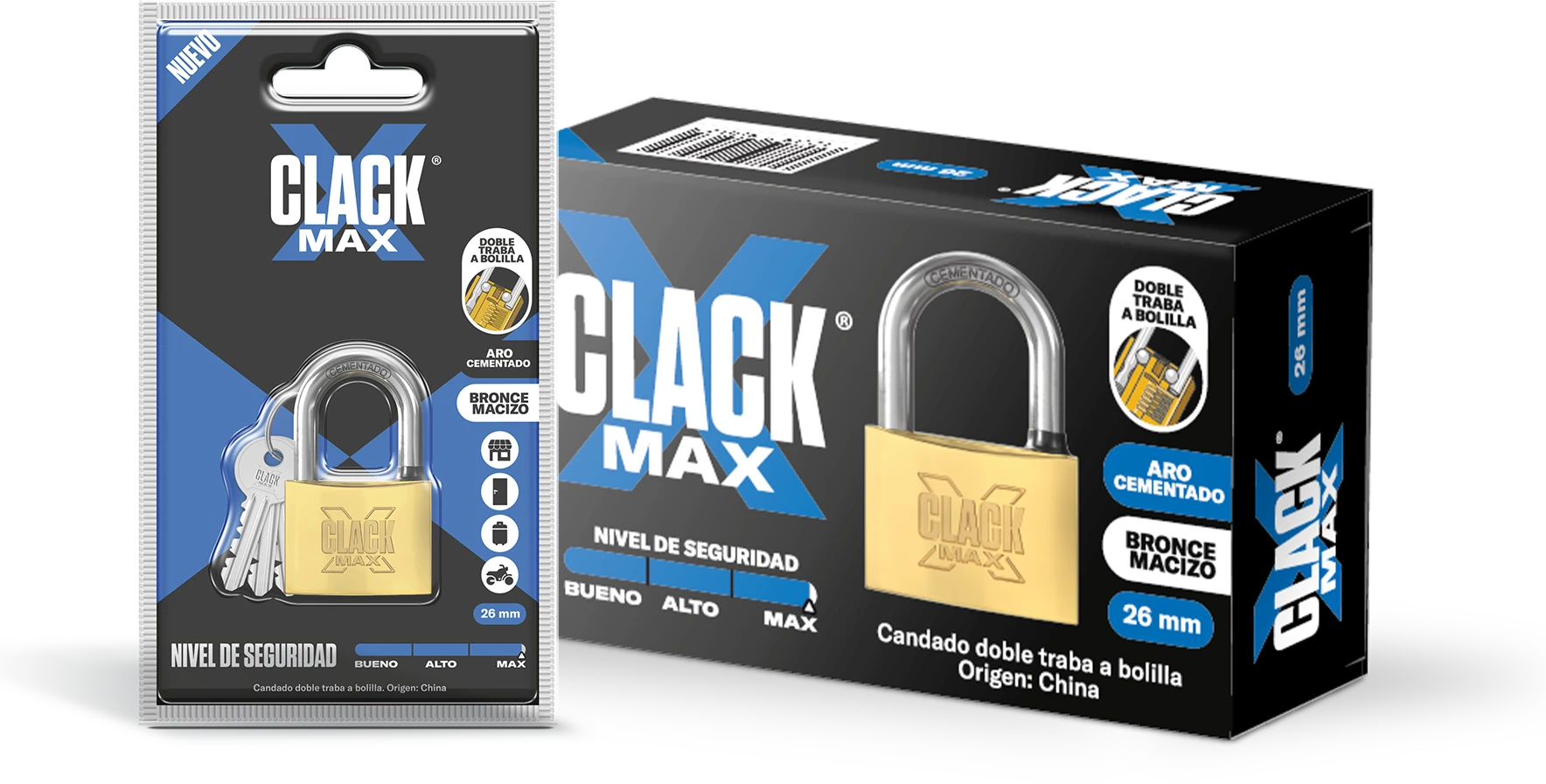 El mecanismo asegura el aro por ambos extremos mediante bolillas de acero, dificultando la apertura por palanca o fuerza bruta. Brinda máxima seguridad.